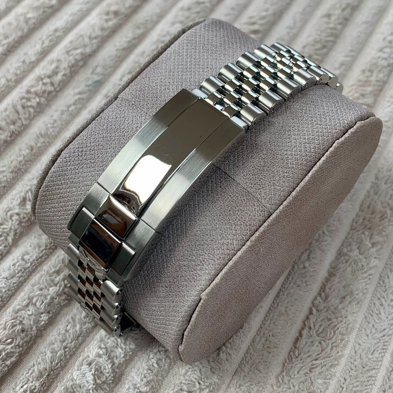 Bracelet: The watch is securely fitted with a solid stainless steel bracelet, designed for both supreme comfort and lasting durability. Its handsome polished and brushed finish elevates the luxurious feel, creating a harmonious extension of the case's brilliant gleam.